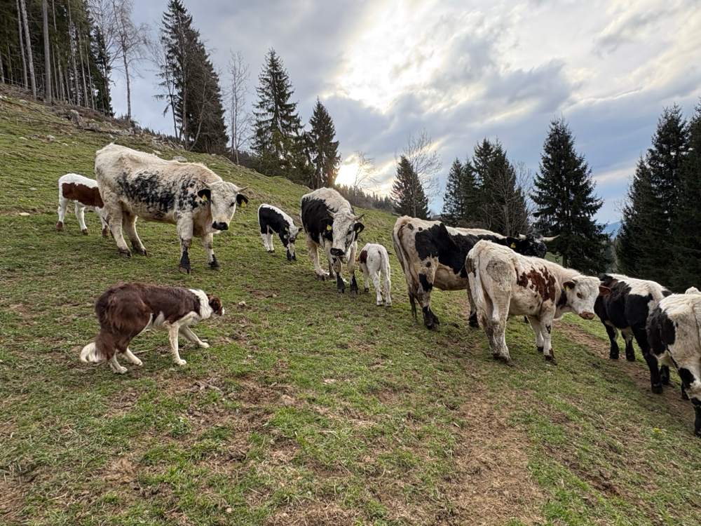 Wenn man ihn sieht, kann man es manchmal kaum glauben, dass er fähig ist, die Rinderherde samt Kälber vorwärts zu bewegen und dass er auch fähig ist, wenn notwendig zu greifen. Er gibt den Tieren Zeit sich zu bewegen, bisschen Aufmunterung und er wehrt sich bzw. greift an, wenn nötig, ohne zu verletzen.